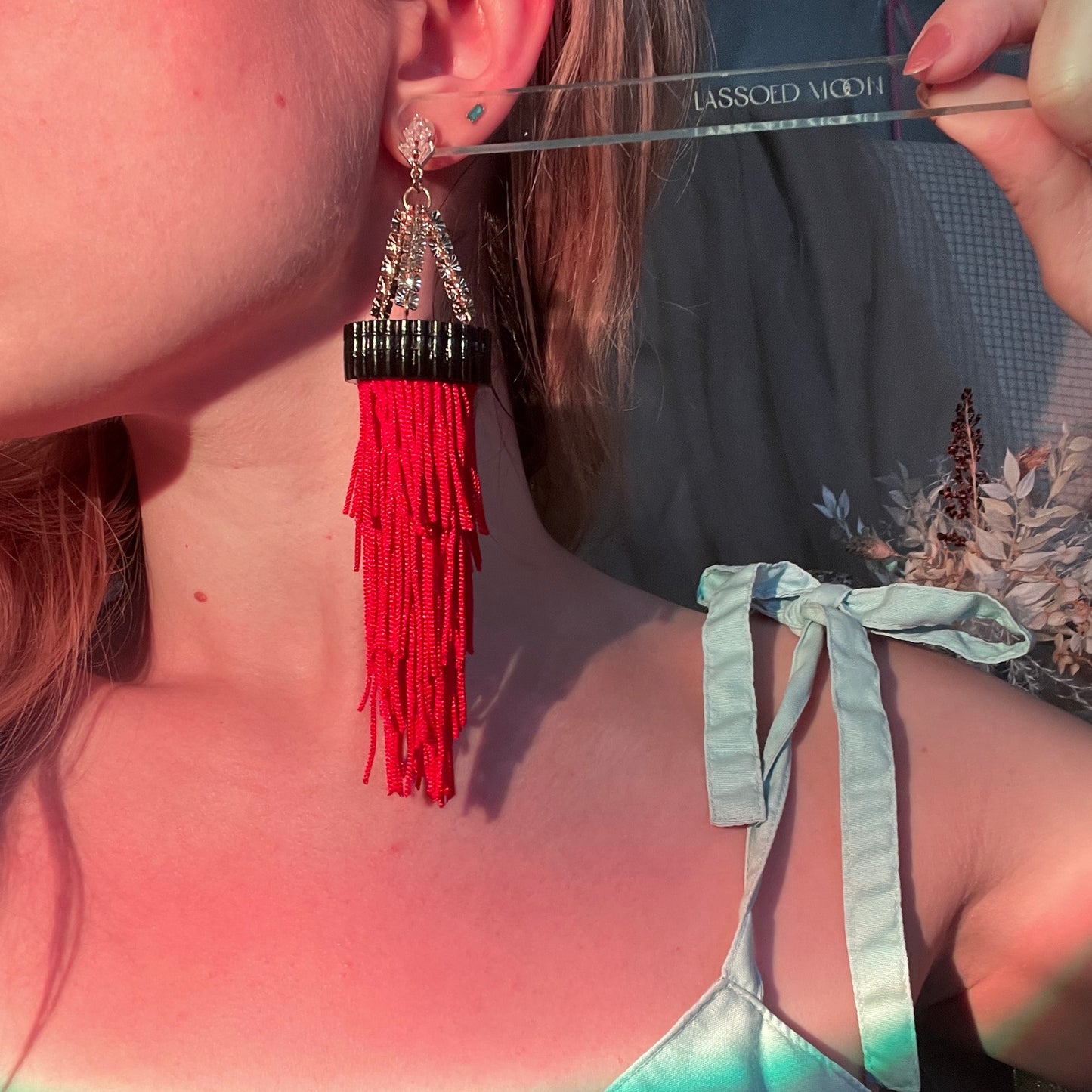 You don't have to put on your red light, but you will want to while wearing these glamorous and functional Roxanne earrings.