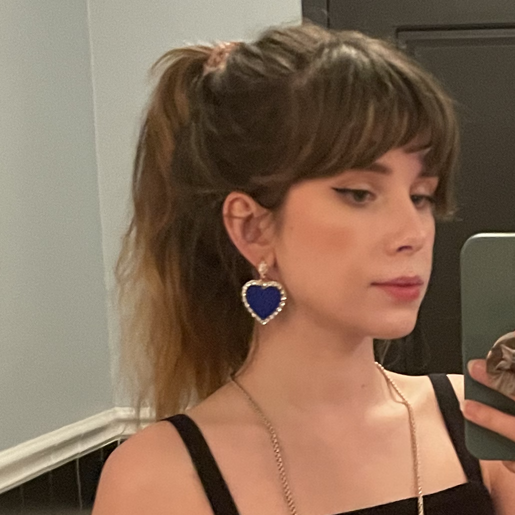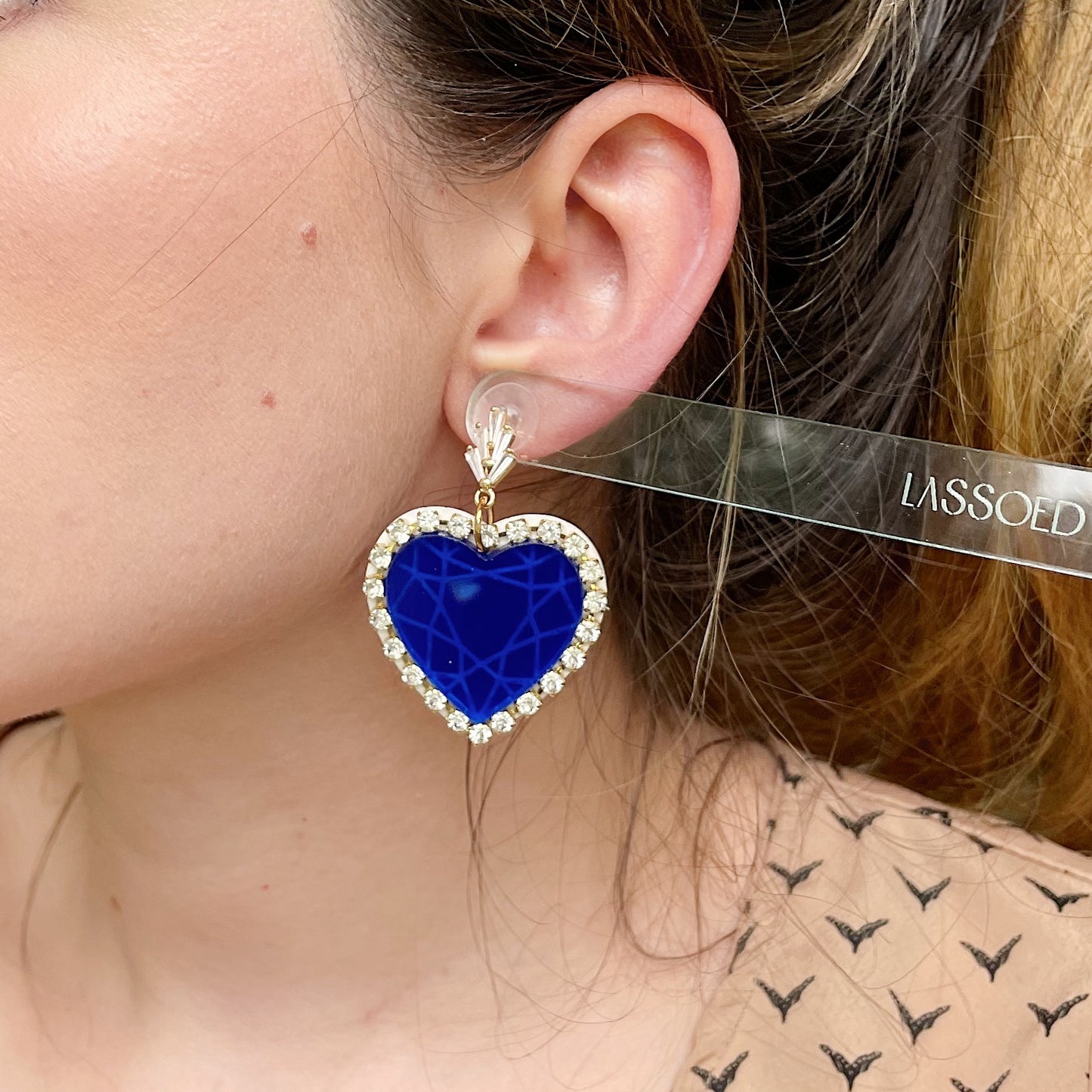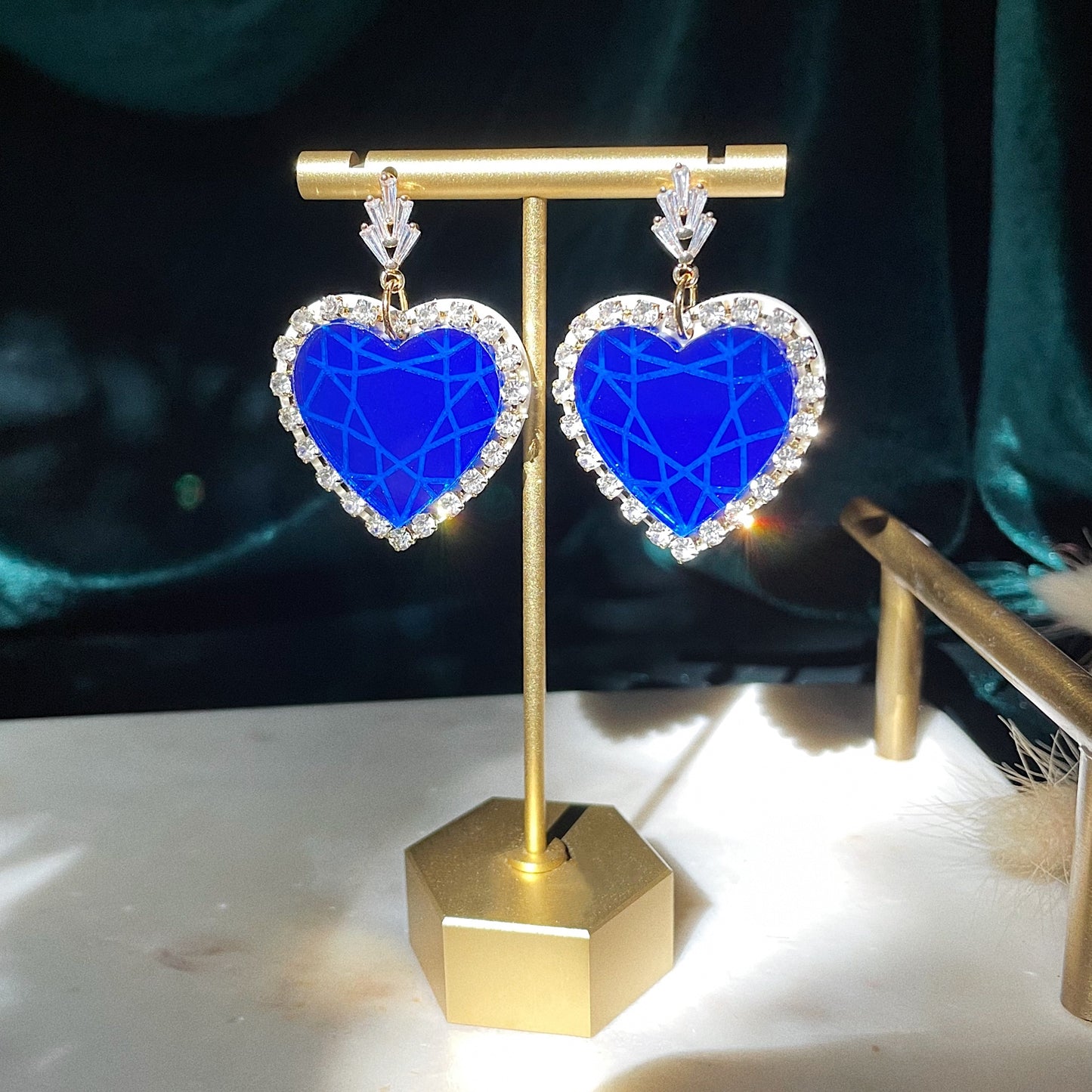 "But I thought the old lady dropped it into the ocean in the end?" "Well baby, I went down and got it for you." You'll never want to let go of these earrings. Made with engraved ocean blue acrylic, a gold chain of Preciosa crystals, and gold-plated sterling silver posts with beautiful cubic zirconia details.