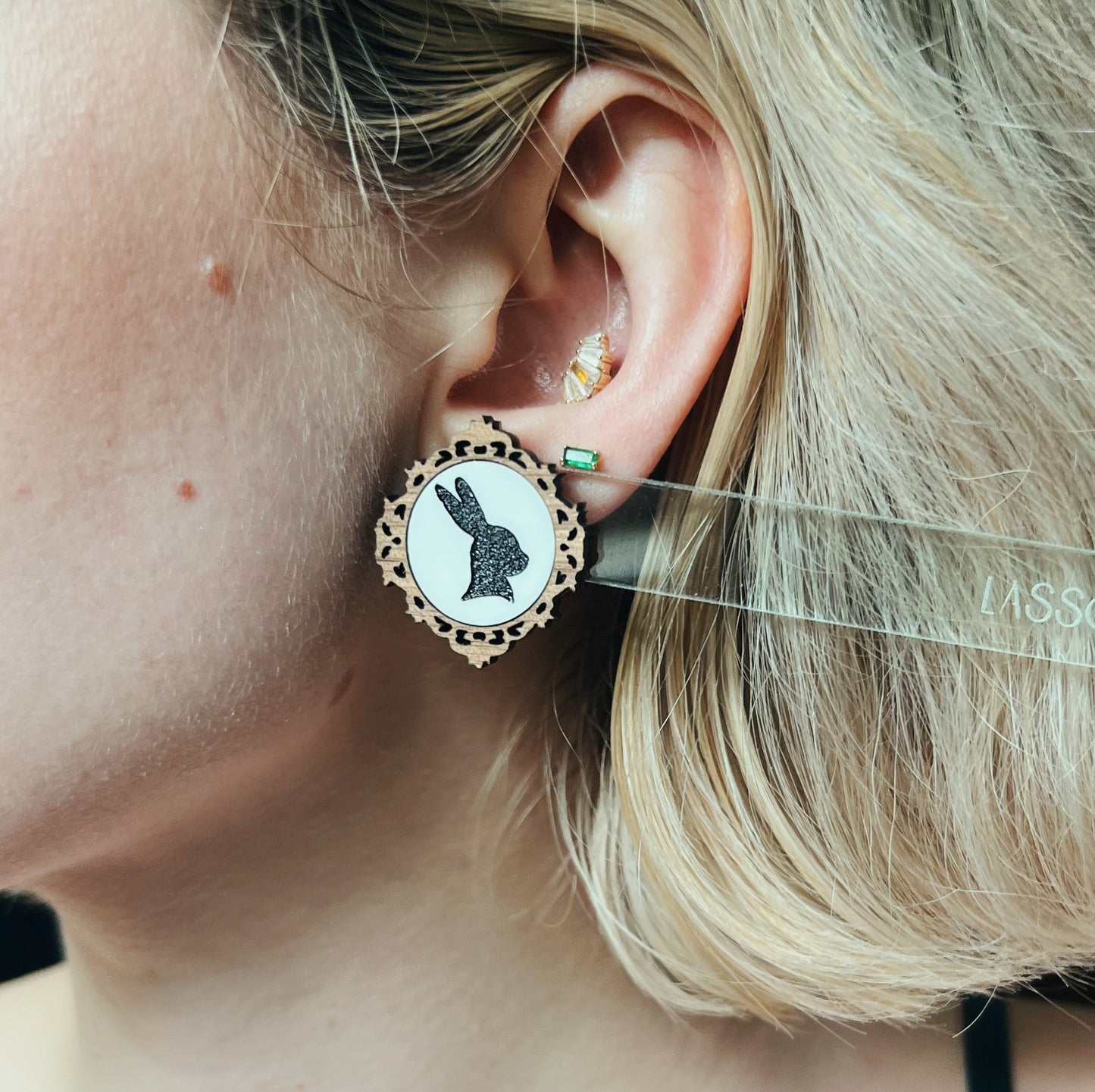 - Hand-painted, engraved bunny silhouettes