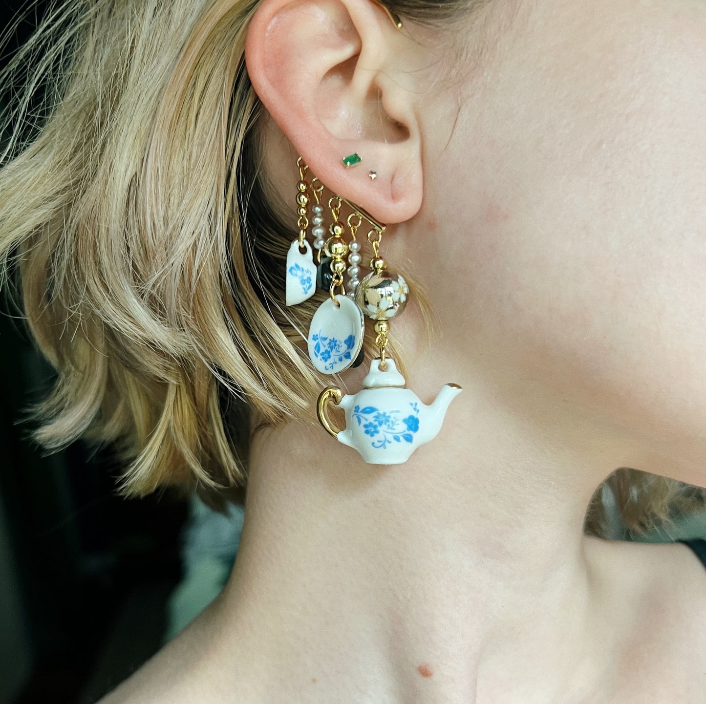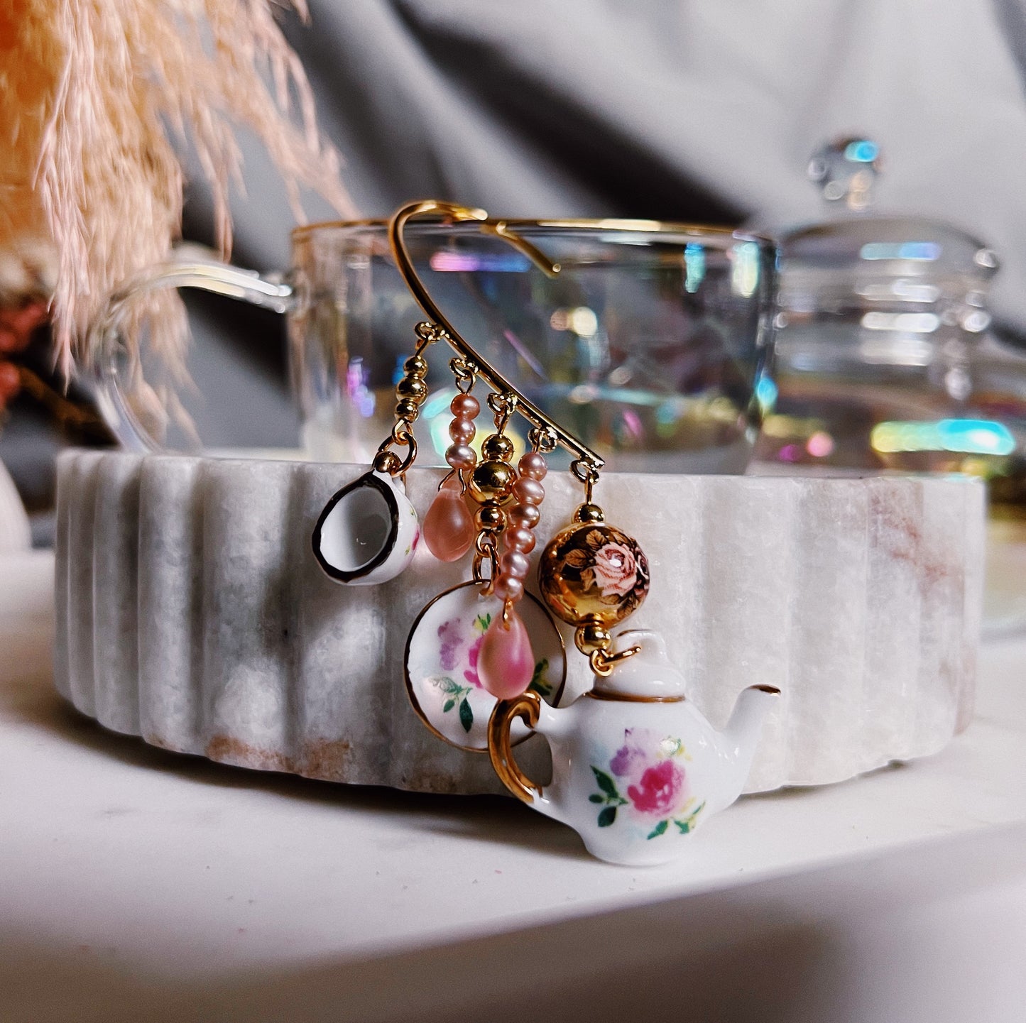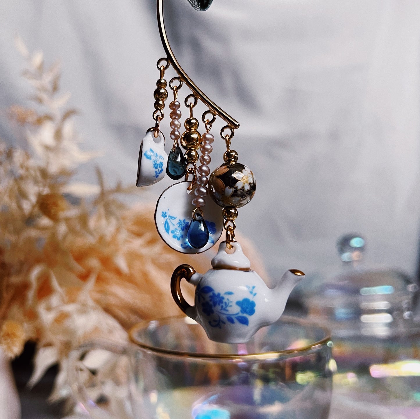 - Approximately 4 1/4" long from top of ear cuff with 2 1/4" from the base to the bottom of the teapot