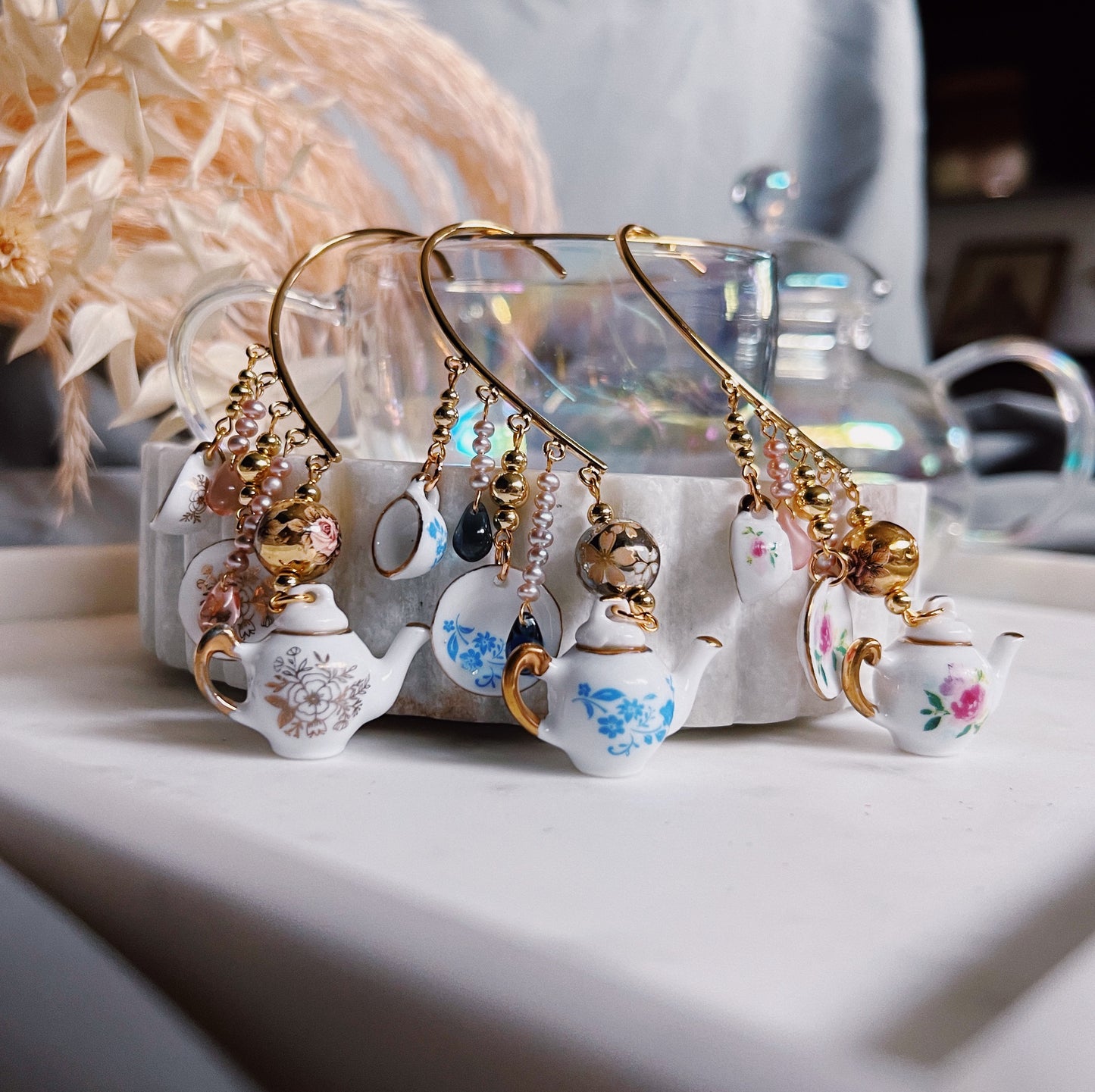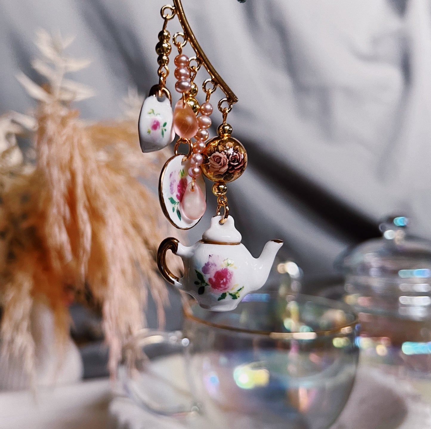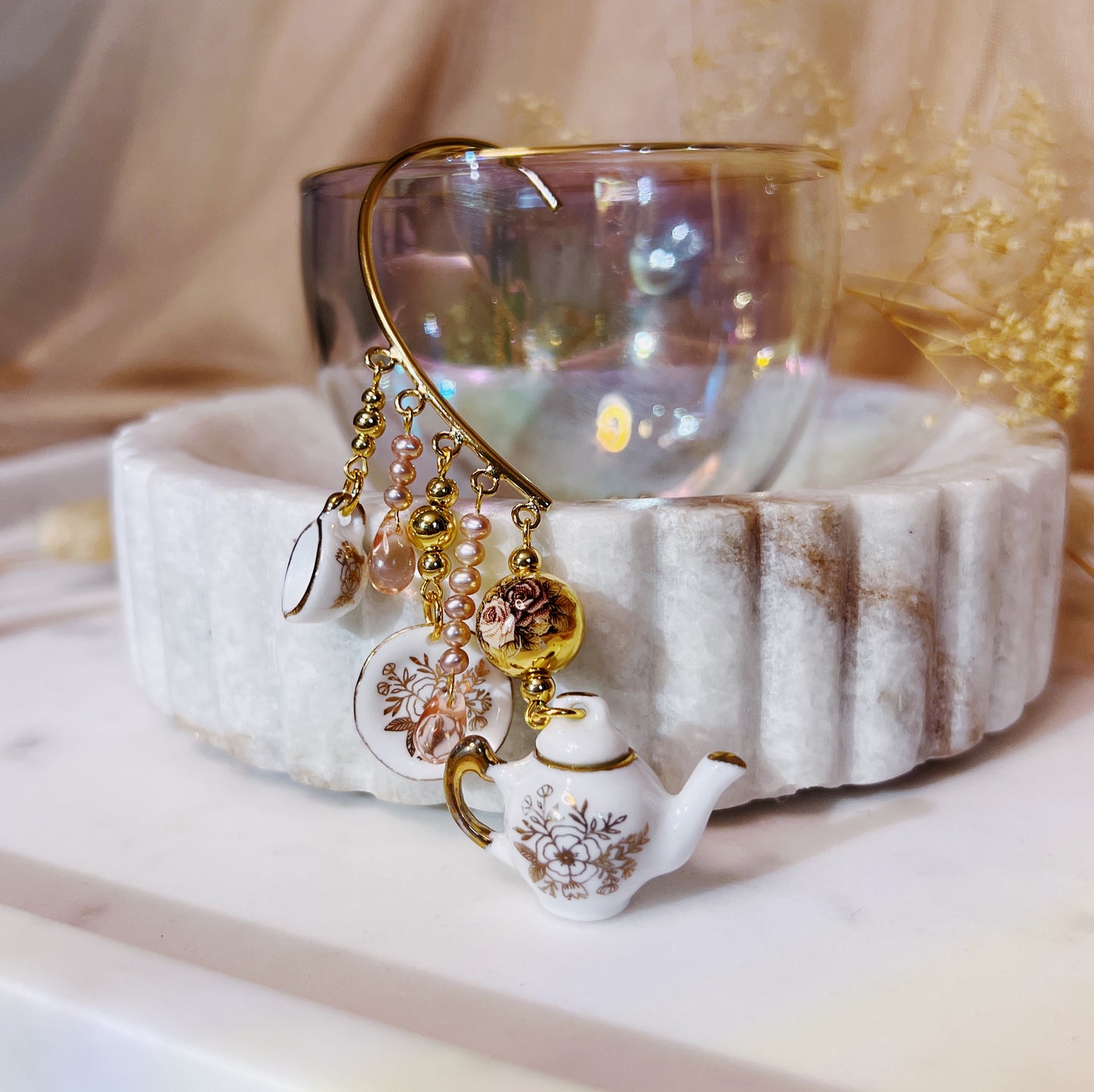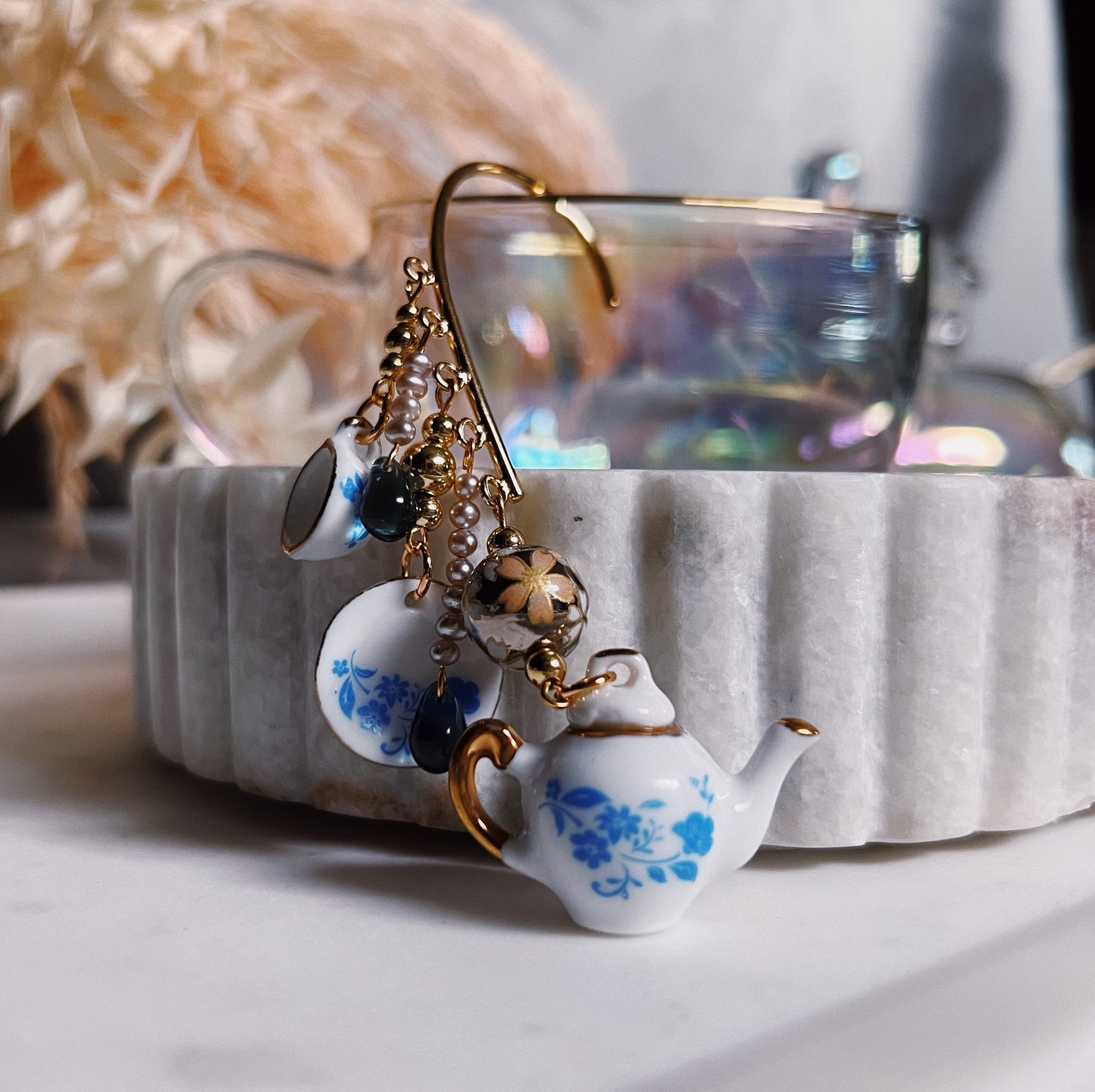 - Approximately 4 1/4" long from top of ear cuff with 2 1/4" from the base to the bottom of the teapot